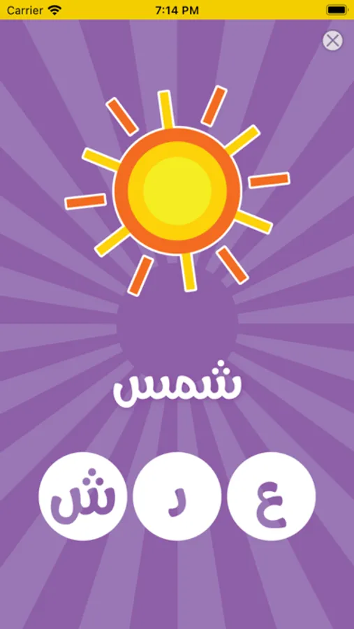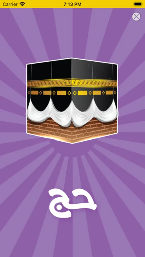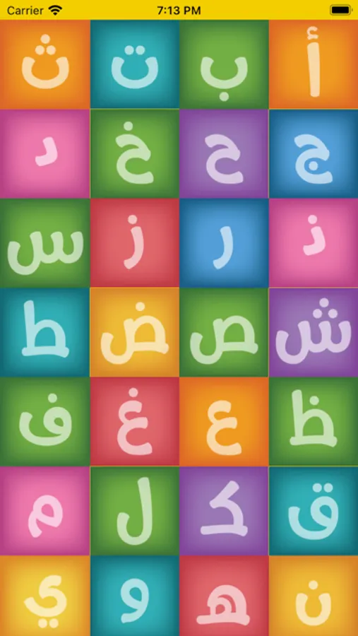 - All the Arabic letters where a short song plays showing the letter pressed followed by a word that starts with that letter