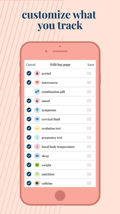 ◆ Customizable data logging to track what's most relevant to you — choose from a variety of categories including symptoms, moods, sex, and nutrition. Ovia Fertility Tracker is not only a period tracker, it also helps you keep track of your overall health!