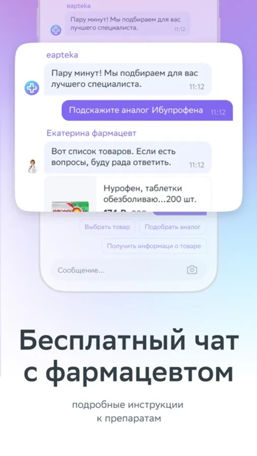 Установите приложение и первыми узнавайте о наличии лекарств, акциях и выгодных предложениях. Заказывайте в любое время: чат с фармацевтом и оформление заказов работают круглосуточно.