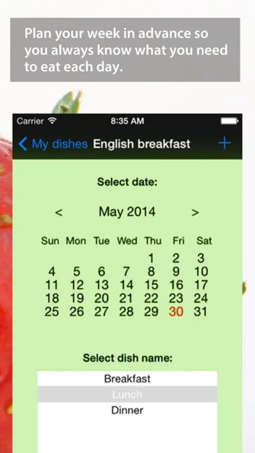 Don't waste your time. Quickly add products and create your own meals. The app will then calculate all calories for you automatically so you know exactly if your meal is appropriate for you to maintain your desired weight.