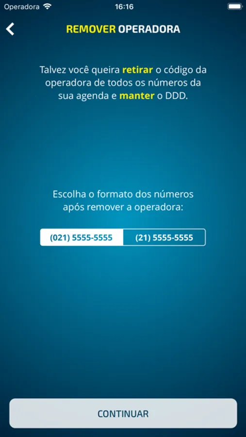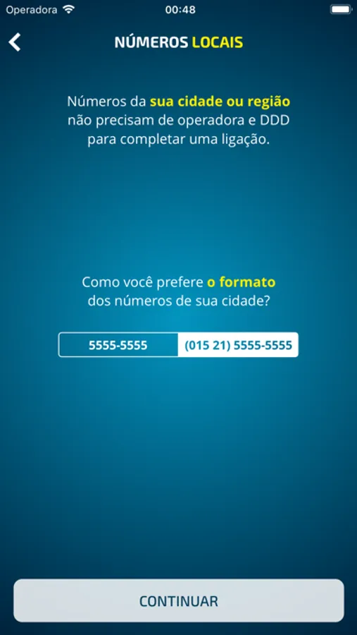 - Você pode escolher o formato dos números da sua cidade (com operadora ou sem operadora e DDD).