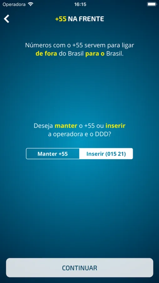 - Insere o código de qualquer operadora nos seus números.
