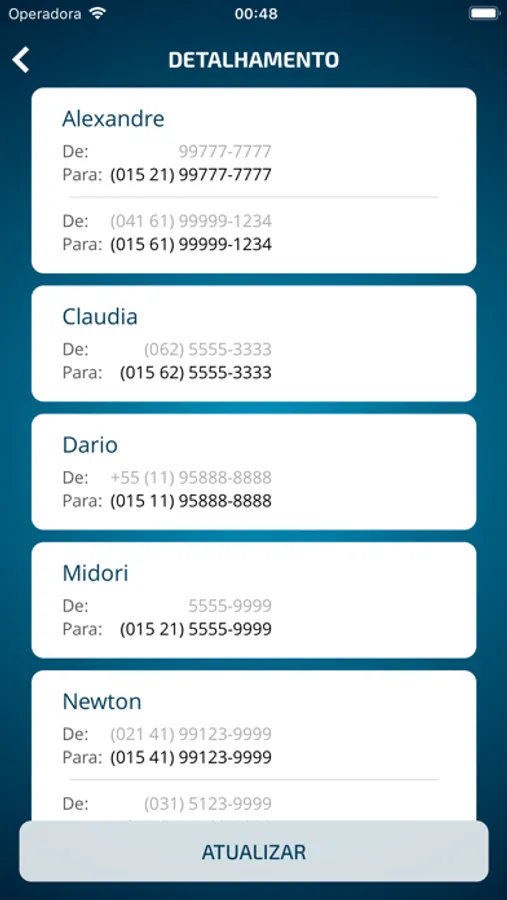 - Atualiza apenas a operadora de longa distância, mantendo o DDD e o número de telefone intactos.