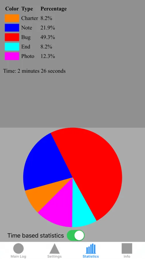 While you create the log, the application continuously maintains a statistic showing how time is spent.