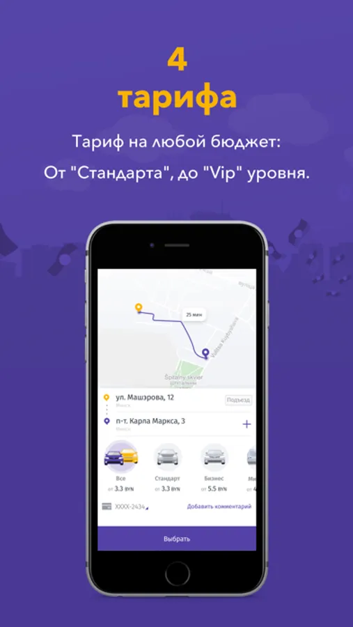 Цены всего от 3.3 BYN по Минску (в других городах Беларуси от 1.5 BYN). 3 тарифа: "Все", "Стандарт", "ВИП".