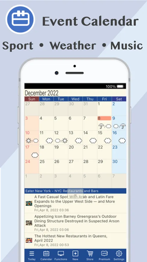 -Sync iOS default calendar, Google Calendar, Google Task, Evernote & you can add sports events, weather forecast & more.