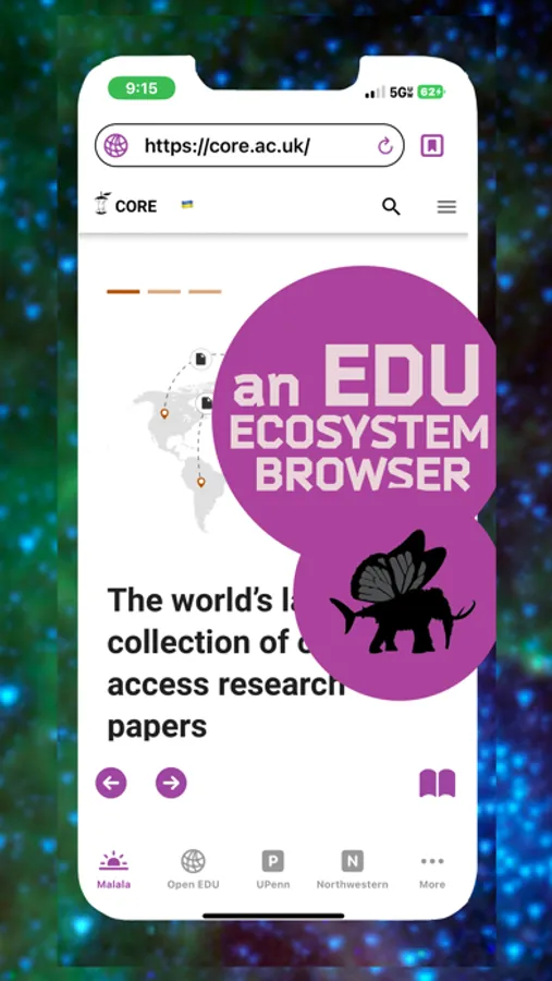 Malala is a browser for the edu ecosystem with access portals to the libraries of the following universities: The University of Pennsylvania, and Columbia University. Northwestern University, The University of Michigan, The University of Wisconsin-Madison, and Arizona State University The Goal of the Malala EDU browser is to provide a gateway to open-access research papers, open-source curriculum materials and other tools which expand access to education, with a focus on gold-standard STEAM resources. The Malala EDU ecosystem is evolving and expanding with a goal of becoming the top=of-mind portal to EDU ecosystems.