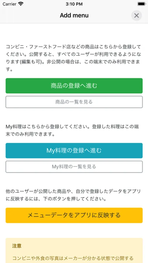 ・Register, edit, and delete the diet from 594 menu items which are mainly Japanese dishes.