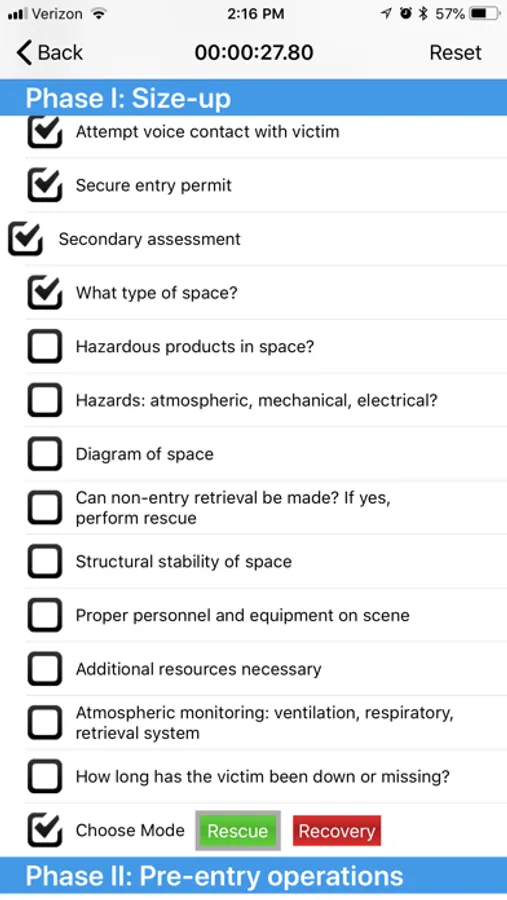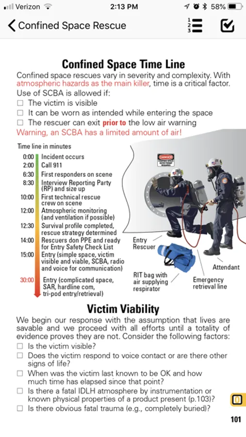 Interactive Command Checklists that include an elapsed time function to assist with training, as well as being a tool that helps rescuers lay the framework for safe efficient rescues.