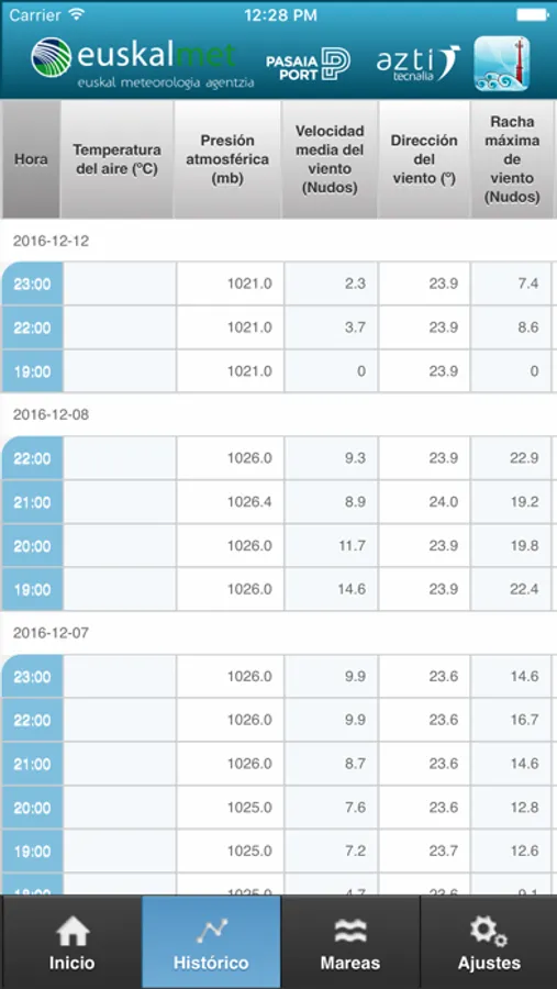 La aplicación proporciona información sobre corrientes, oleaje, mareas, temperatura del mar y del aire, viento (velocidad y dirección), presión atmosférica, etc. La persona usuaria puede informarse también de los datos correspondientes a las 72 horas anteriores al momento de su consulta (históricos).