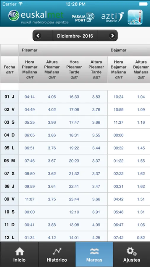 Los datos de las tablas de previsión de mareas han sido calculados por AZTI-Tecnalia a partir de los análisis armónicos de la marea astronómica del registro de la estación de Pasaia. Las previsiones contemplan únicamente los componentes de origen astronómico de la marea; por tanto debe tenerse en cuenta que puede existir una componente de origen meteorológico no considera (del orden de decenas de centímetros como máximo).