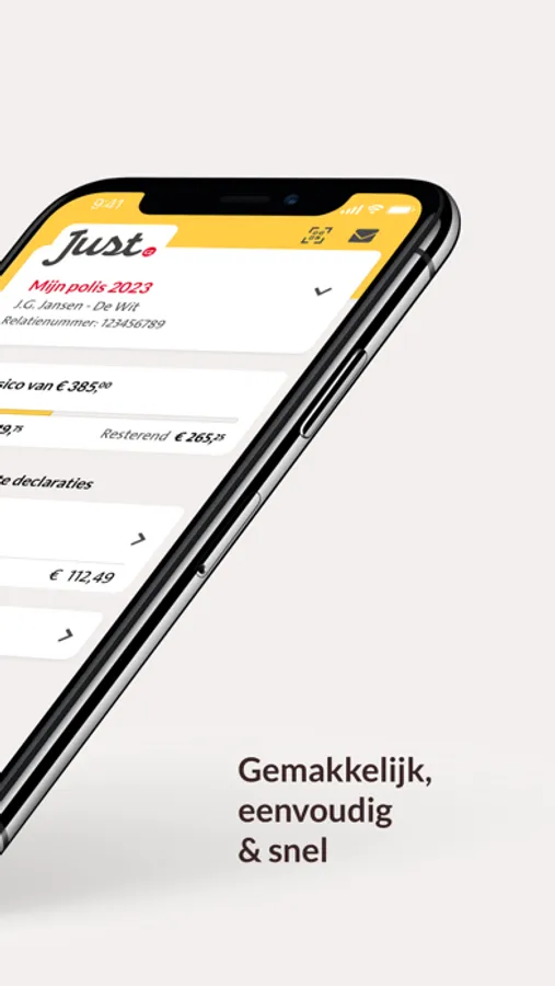 Nota van een zorgverlener voorgeschoten? Declareer je kosten in een paar simpele stappen. En wil je gebruik maken van de vergoeding voor fysiotherapie of mondzorg vanuit de aanvullende verzekeringen Just Live of Just Smile? Meld in de app dan eerst even je ongeval. Meer info nodig over je zorgverzekering of zorgverbruik? Vind het antwoord in de app! Met je mobiele telefoon, waar en wanneer je maar wilt.
