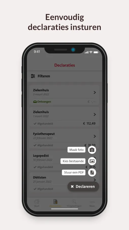 • Eenvoudig declareren: foto maken, versturen en klaar. Wij doen de rest.
