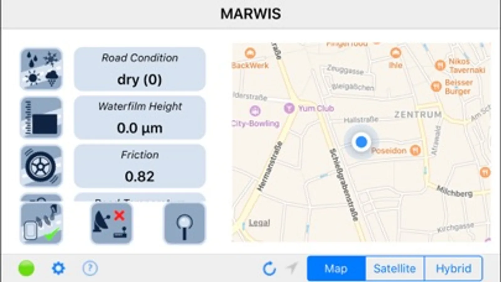 The app for the mobile road-sensor MARWIS-UMB from G. Lufft Mess- und Regeltechnik GmbH allows you to display and transmit location based sensor data like friction, water film height or the road condition.