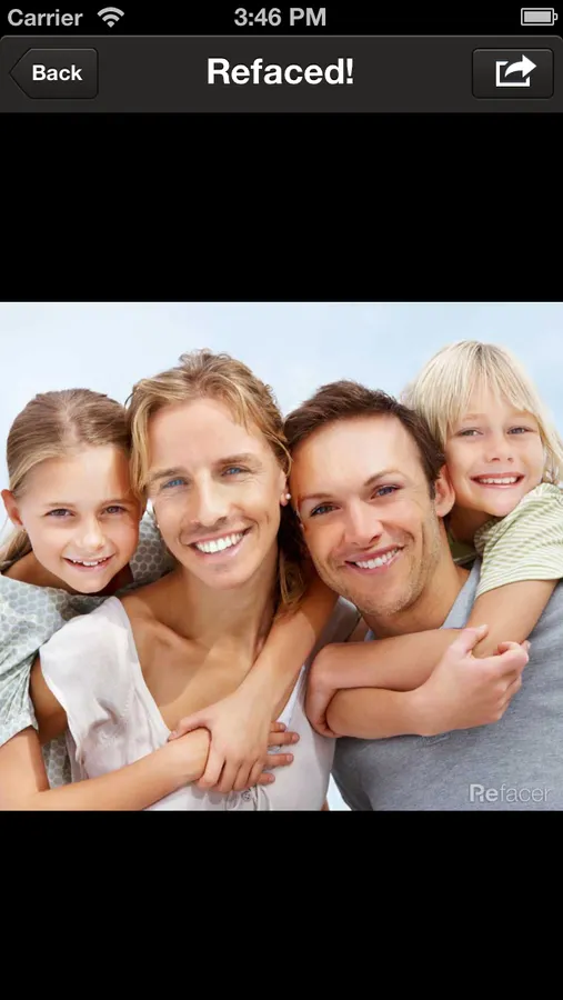 Refacer is an innovative and funny app which lets you replace a face on a picture with another one.