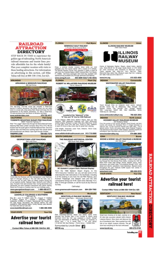 News and commentary: Monthly reports on freight railroads, passenger service, transit, preservation, railfan opportunities, and more.