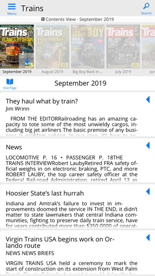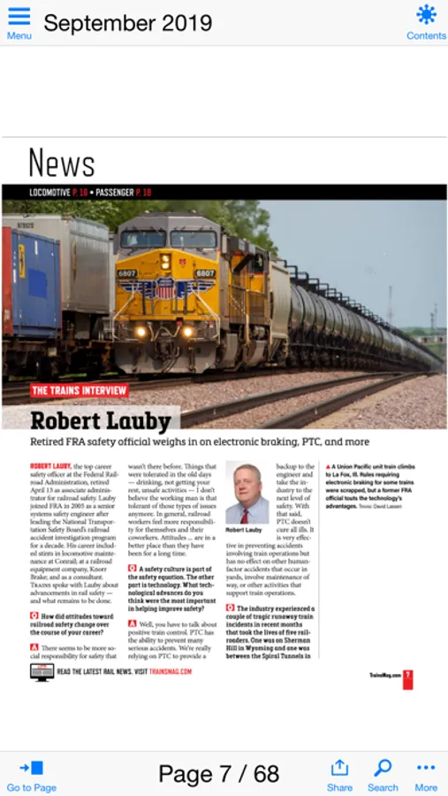 If you love railroads, this magazine is for you. Stunning photos, insider analysis, and trends to watch – you’ll find all that and more in each monthly issue. Trains is the must-read journal about railroading, packed with timely information for people who love railroads and people who make them run. Trains’ expert staff and contributors clue you in about the best places to view trains andlocomotives, bring you behind the scenes to explain complex operations, help you unravel the latest technologies and trends, and introduce you to the people who make it all happen. From passenger to freight, historic preservation tomodern operation, Trains has it covered.