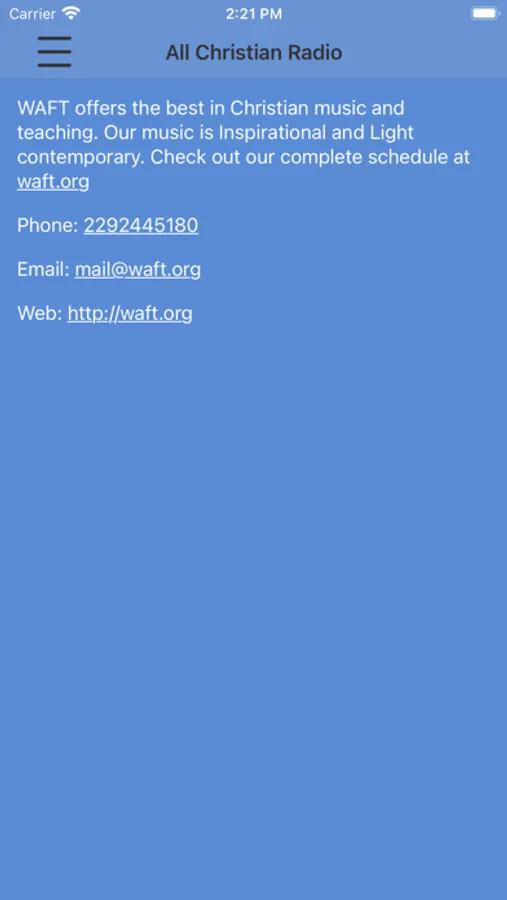 WAFT provides the best inspirational music and sound Bible teaching 24 hours a day. Music from artists like Chris Tomlin, Christy Nockels, Zach Williams, and Mercy Me. Speakers include Charles Stanley, David Jeremiah, Ravi Zacharias, Richard Ellis and Chip Ingram.