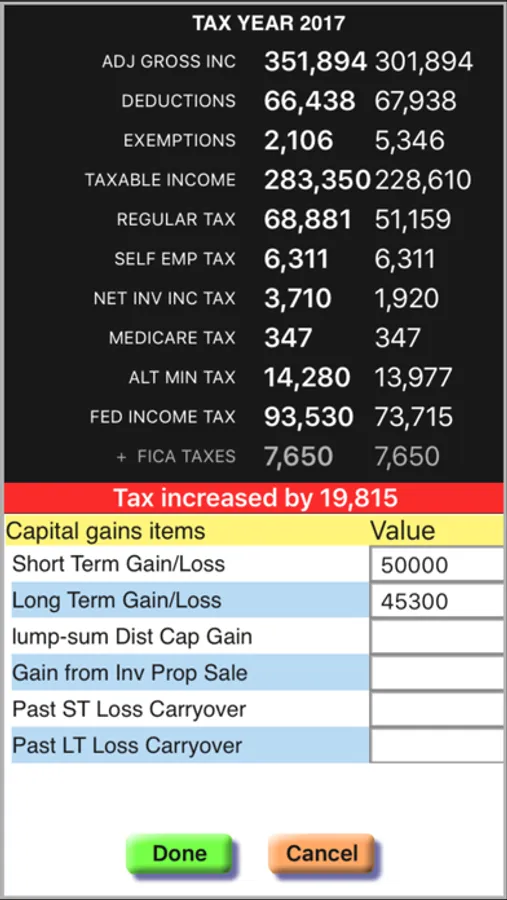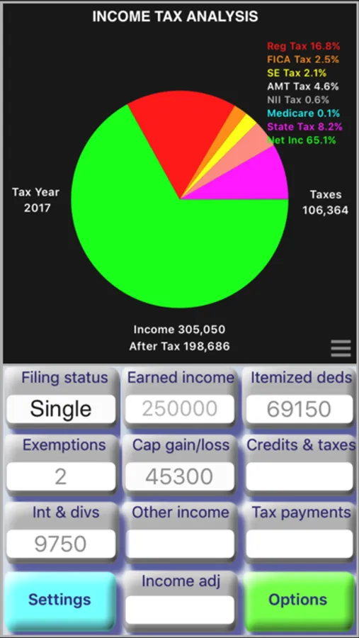This app can be a valuable tool for professionals and nonprofessionals alike. For a tax professional it will enhance your analytical ability, improve your day to day productivity and make tax planning more efficient. For an independent individual, it provides an easy to use tool to analyze the tax impact of a transaction in terms of taxes saved or increase in tax liability, calculate a quick year-end tax estimate, perform a pre-tax-return-filing analysis, or review the impact of any other tax related investment decision; TaxMode can help you make more informed decision by providing a better understanding of all the possible income tax implications.