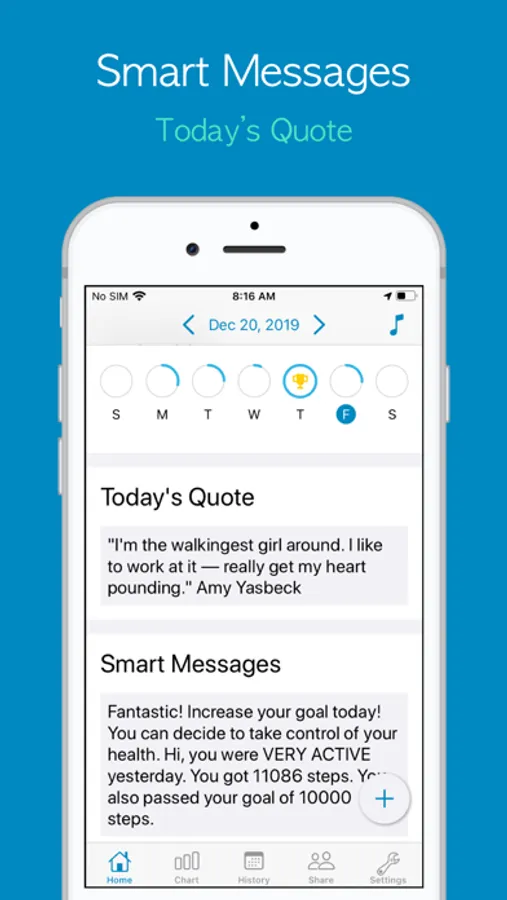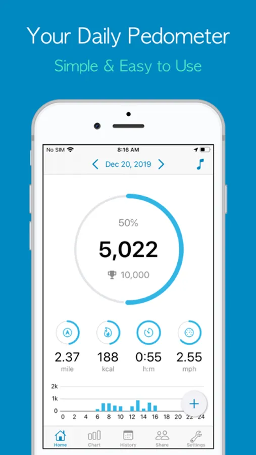 With easy to read charts and history logs, monitor your steps, calories burned, distance, and time. As your best walking buddy, Accupedo will motivate you to walk more! Set up your daily goal and step towards a healthier you with Accupedo pedometer.