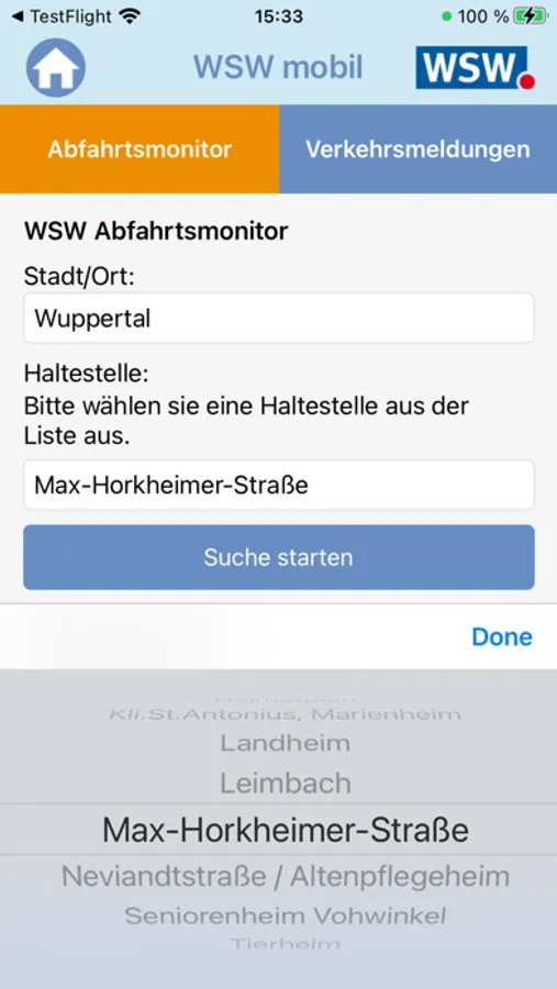 Der WSW Abfahrtsmonitor zeigt Ihnen sämtliche Linien an, die an der von Ihnen ausgewählten Haltestelle abfahren.