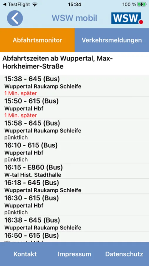 - Übersichtliche Anzeige der Abfahrtszeiten