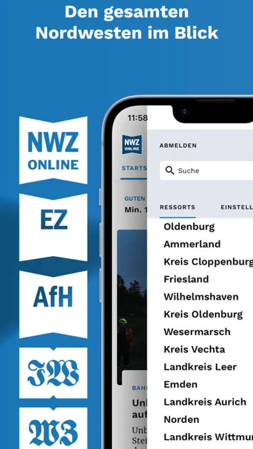 Alle Nachrichten von fünf Zeitungstiteln in einer App - NWZonline ist das gemeinsame Nachrichtenportal der Nordwest-Zeitung, Emder Zeitung, Anzeiger für Harlingerland, Jeversches Wochenblatt und Wilhelmshavener Zeitung.