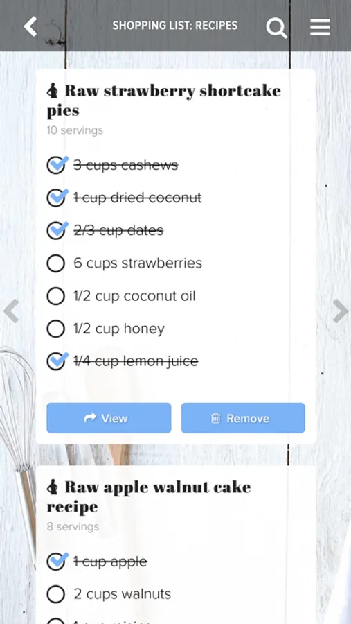 - Handy shopping lists (with checklists) to keep you organized. The shopping list will even group similar ingredients if you're shopping for more than one recipe.