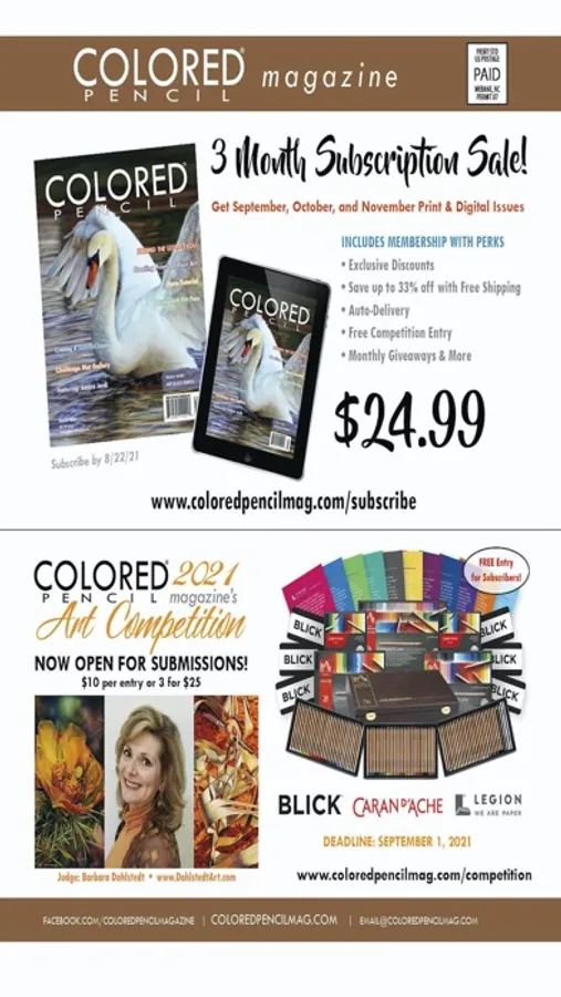 Inspiration for the passionate colored pencil artist. Each month we bring you fresh colored pencil content, including news, tips, contests, artwork, tutorials, and profiles of your favorite artists!