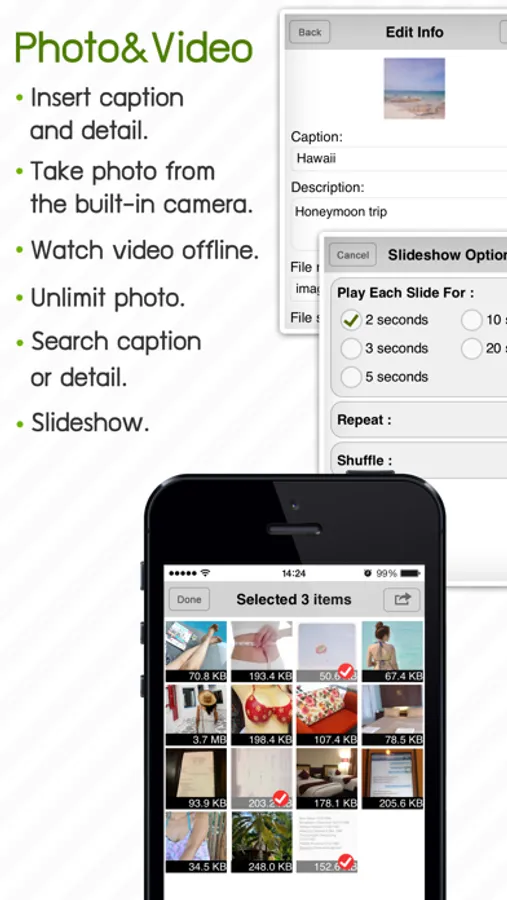 - Photos and Videos imported from camera roll needs to be manual deleted from the photo app.