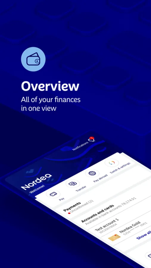 • In the Overview tab, you can see all your finances in one place. Add, hide, or rearrange the content on the Overview page to personalise your experience.