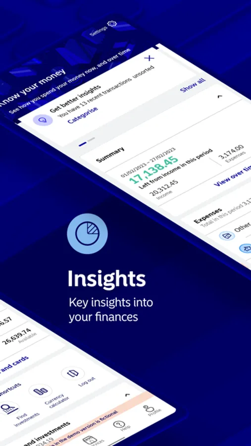 • On the insights tab, your spending is divided into categories to give you a deeper understanding of your finances.