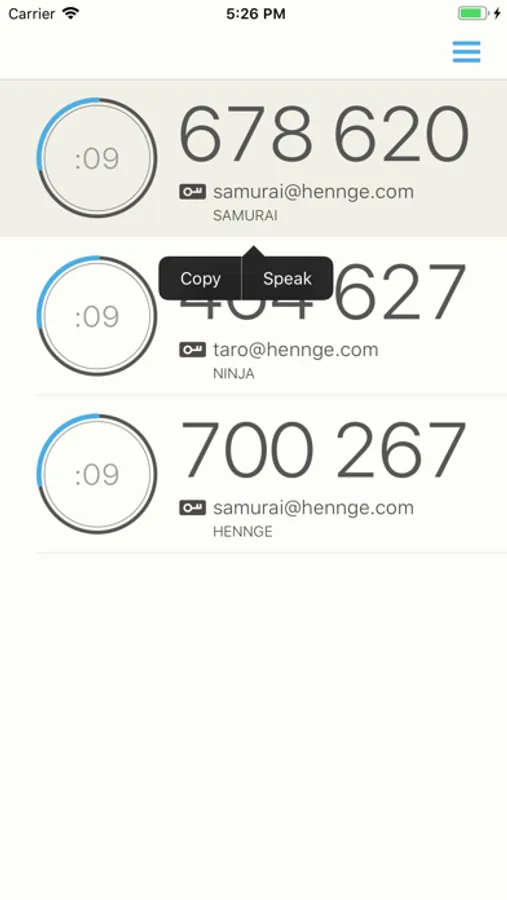 HENNGE OTP Generator supports FaceID, TouchID or your phones passcode to prevent strangers or children from casually accessing your OTPs, even when you are physically away from your phone.