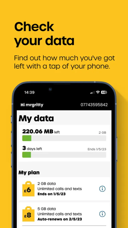 The giffgaff mobile app lets you manage your giffgaff account with the tap of your phone. You can check your data use on the go and connect to literally thousands of WiFi hotspots all across the UK with WiFI Extra. But that's just the start of what the app can do. It's a bitesize wonder.