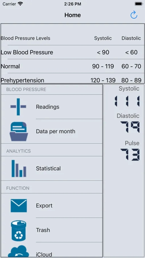 · Blood pressure data maintenance: addition, correction, and deletion of blood pressure data are available.