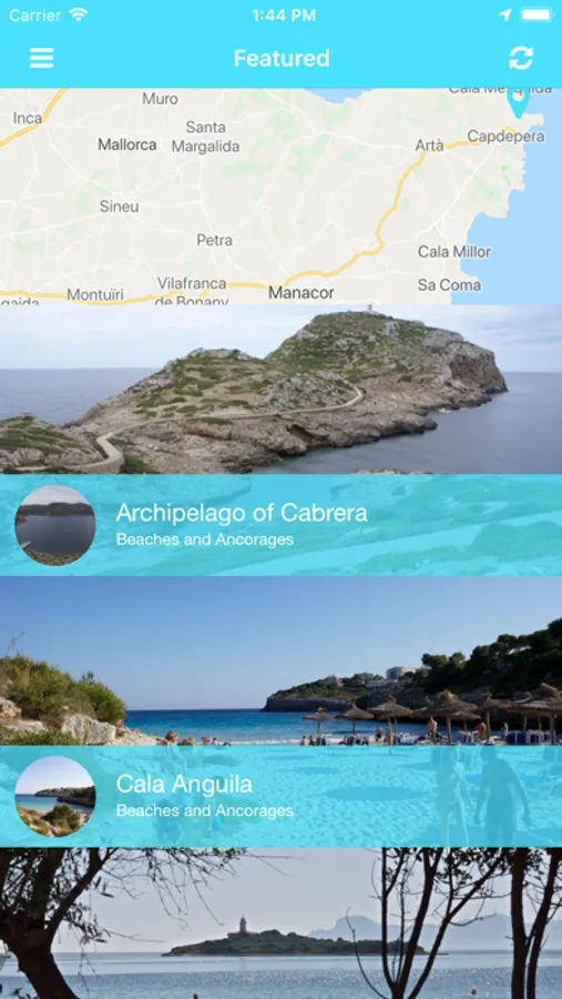 +100 coves and ports, 25 anchorages. Find the sites you are interested filtered by proximity or type.