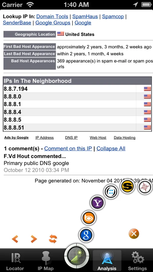 - IP Address Inspector (Domain Tools, Spamcop, SenderBase, Google Groups)