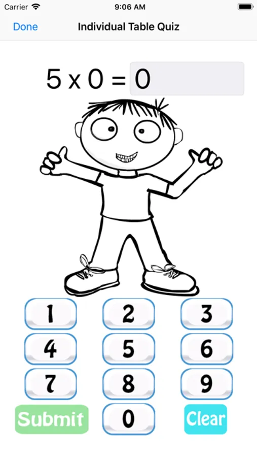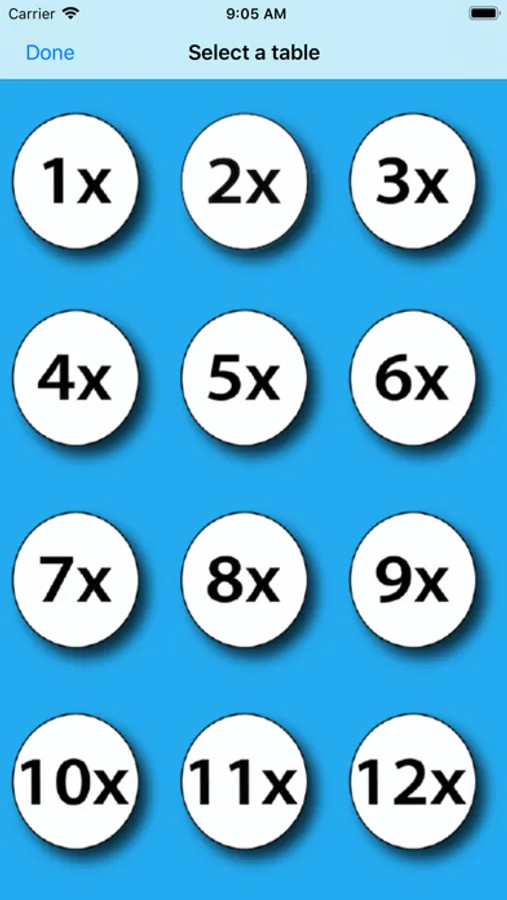 Learn your multiplication tables by focusing on one table at a time or by taking a quiz that tests in random order from tables 1 through 12. There is no timer or time limit.