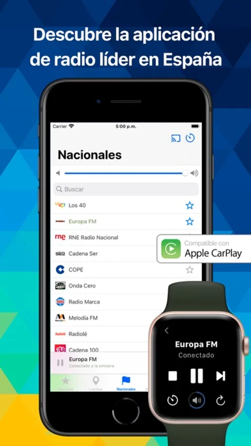 ¿Quieres una app de radio gratis completa, sencilla de usar y que no te de problemas? ¡Pues aquí la tienes! Radio FM está hecha en España, es compatible con tu Apple Watch (altavoz + auriculares), soporta CarPlay, Chromecast y AirPlay de forma nativa. ¡Y te regalamos la mayor recopilación de emisoras españolas que verás en cualquier app de radio!