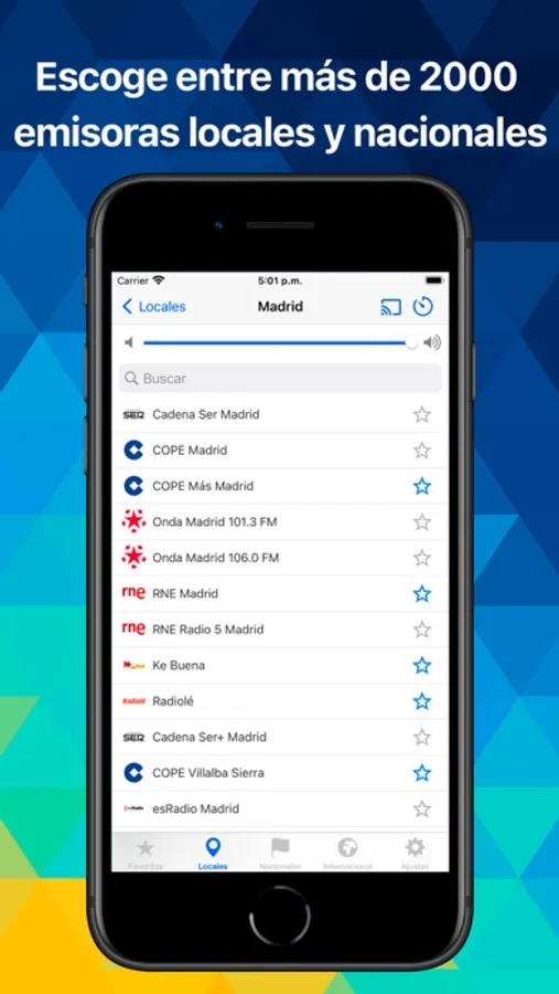 - Emisoras locales: El resto de apps apenas tienen unas pocas emisoras de tu provincia, ¿verdad? Nosotros sí las tenemos, y si echas en falta alguna, nos mandas un email y te la añadimos.