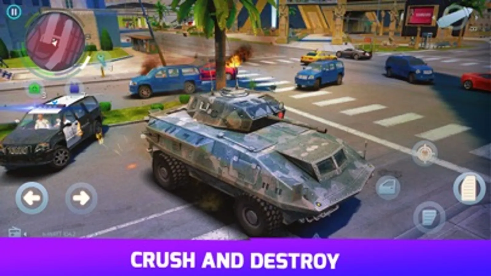 √ Drive CRAZY VEHICLES including monster trucks, armored tanks, muscle cars, mafia limos & fighter jets.