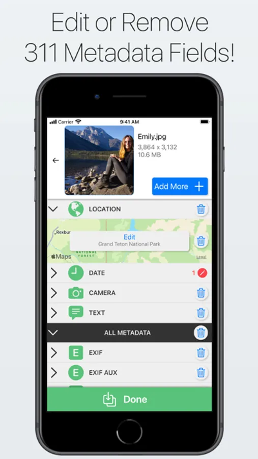• Edit / Remove location (incl. direction & altitude), Caption, Copyright, and Date (requires in-app purchase)