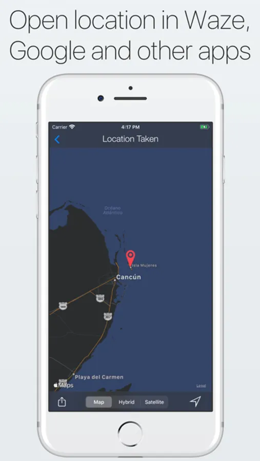 • Open the location in Waze, Maps.Me, Apple or Google Maps, and more.