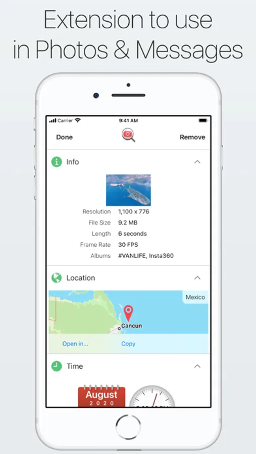 • Extension to see photo metadata in Messages, Photos, and other apps.