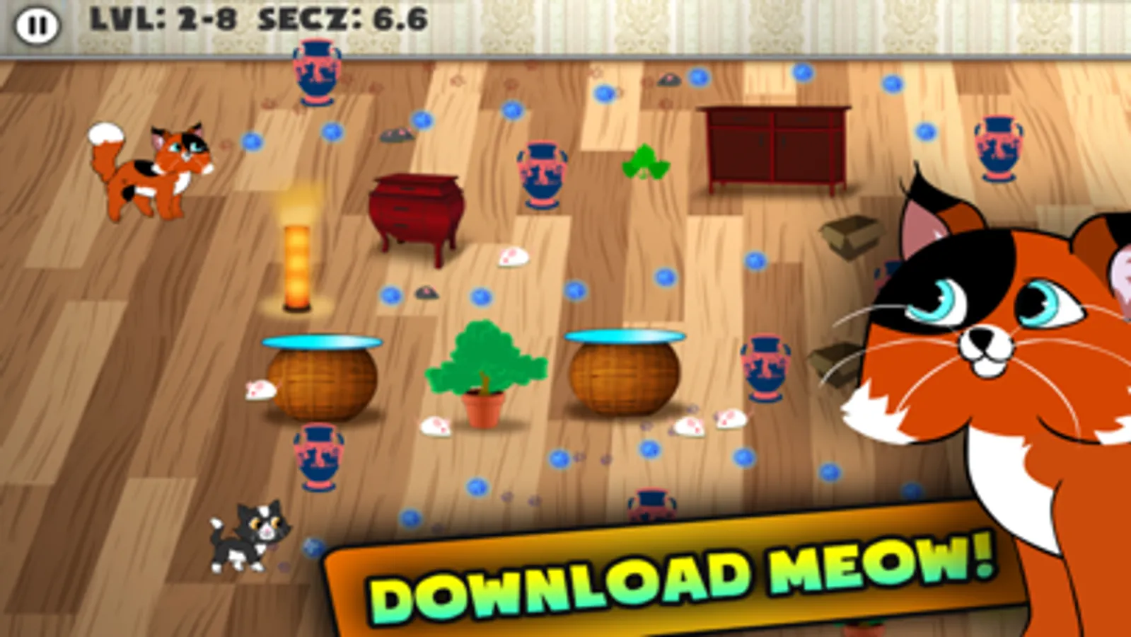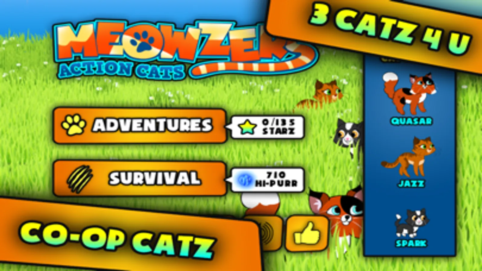Control up to 3 unique cats through hilarious adventures. Romp through different Adventure-mode worlds, each with unique items and visuals. Or challenge yourself to achieve the highest-purr score in Survival-mode!