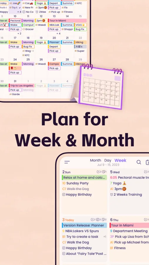 - Manage notes in day, week and month view