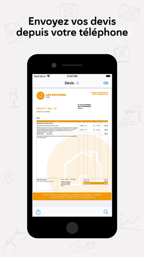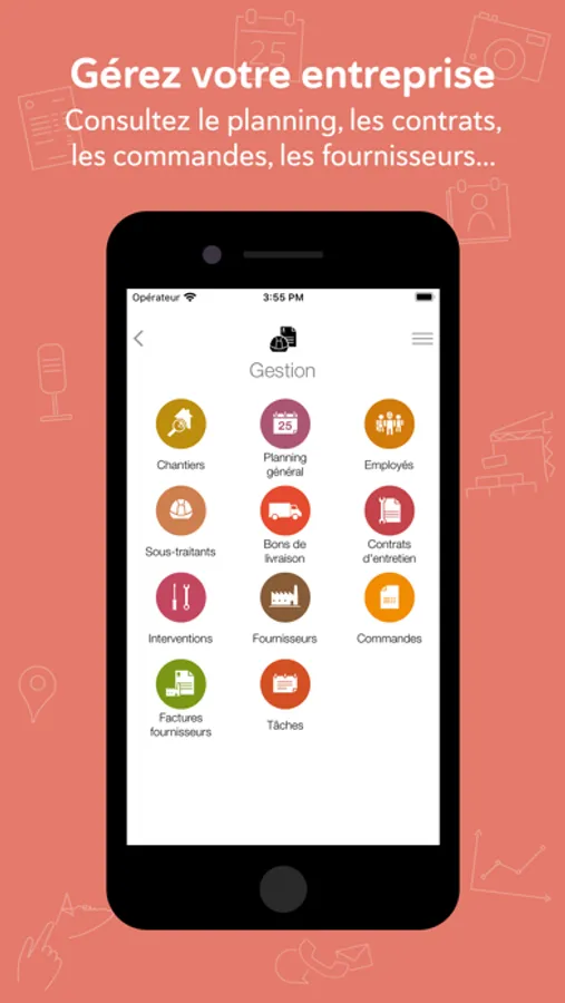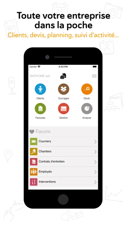 Batappli Mobile permet de s'y connecter pour consulter sa gestion en temps réel et l’enrichir de photos et d'enregistrements sonores. L'application mobile permet aussi de faire signer directement un document à son client.
