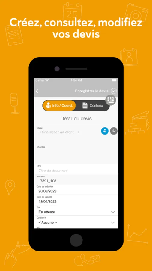 - Création / Modification des contacts et documents (Devis, bon de livraison, bon de travail et tâches)