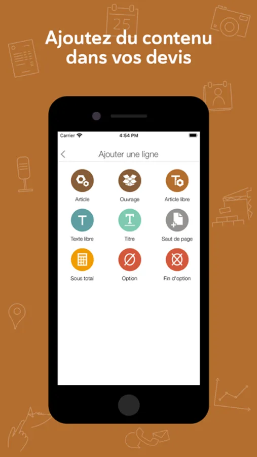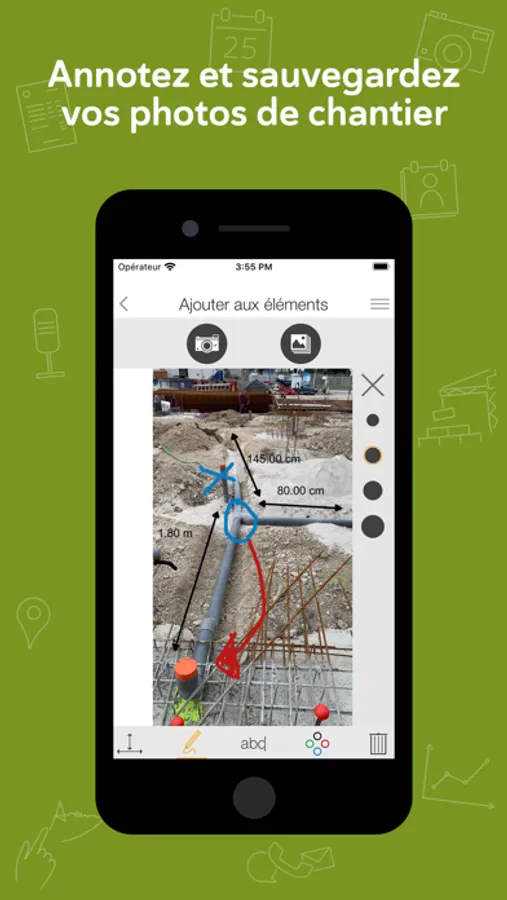 - Gestion complète des éléments (Photos, mémos sonores, signatures, annotations sur photo, bibliothèque de l'appareil)