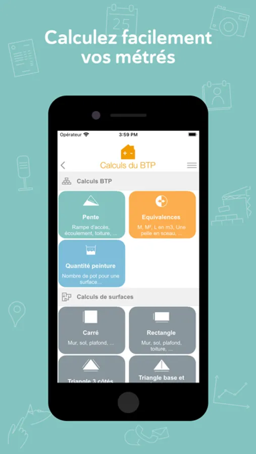 - Module de calculs du BTP (Pente, surfaces, volumes, conversions...)